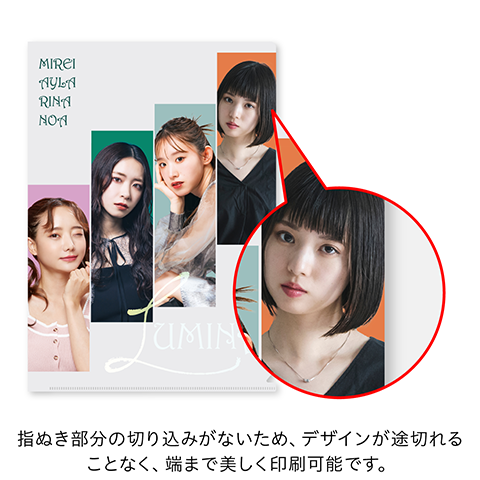 全面にデザインができる「指ぬきなし」タイプのクリアファイル。